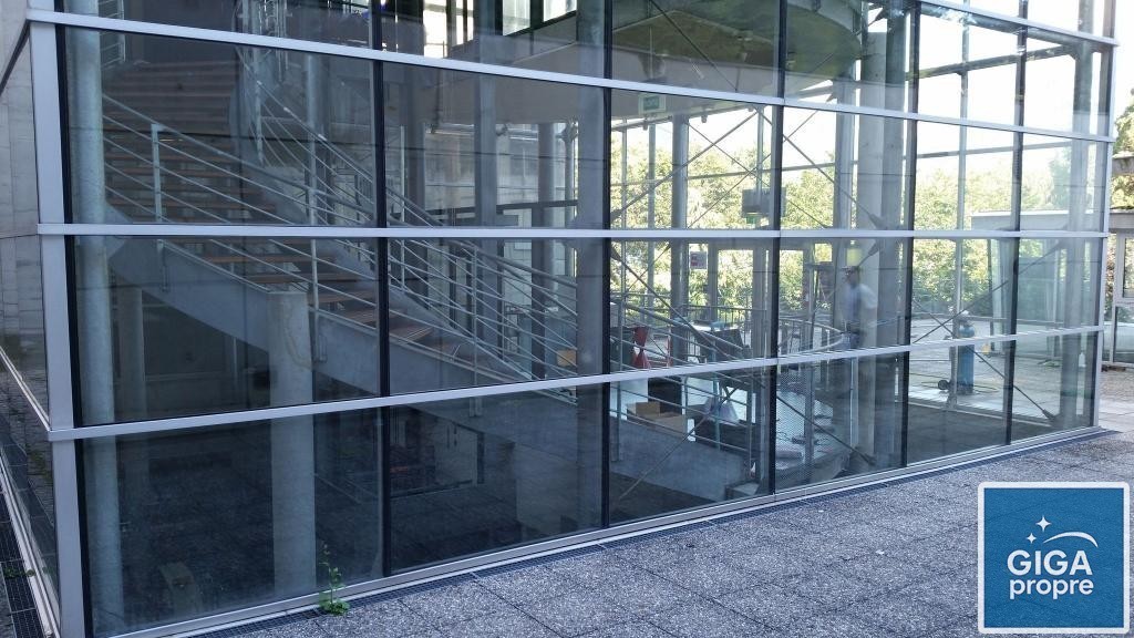 Chez Gigapropre, nous intervenons sur tous types de surfaces vitrées, en intérieur comme en extérieur, pour garantir une transparence impeccable.